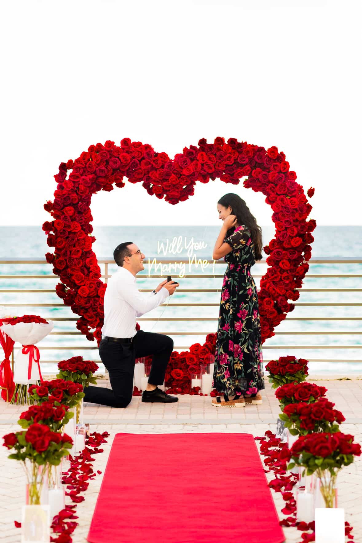 Picture the moment: you take their hand as the sun dips low, and a glowing heart arch stands behind you — waiting for the most important question you’ll ever ask.